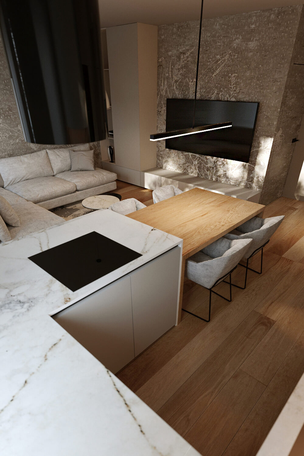 Stworzymy wstępny projekt, w tym rysunki, moodboardy, dobór kolorystyki i materiałów.